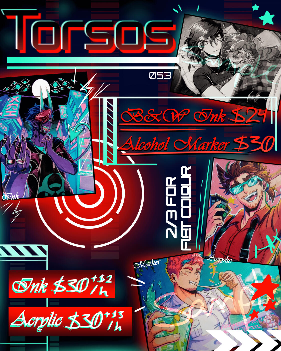 Torso | $24 | $30 | $30 +$2/h | $30 + $3/h |