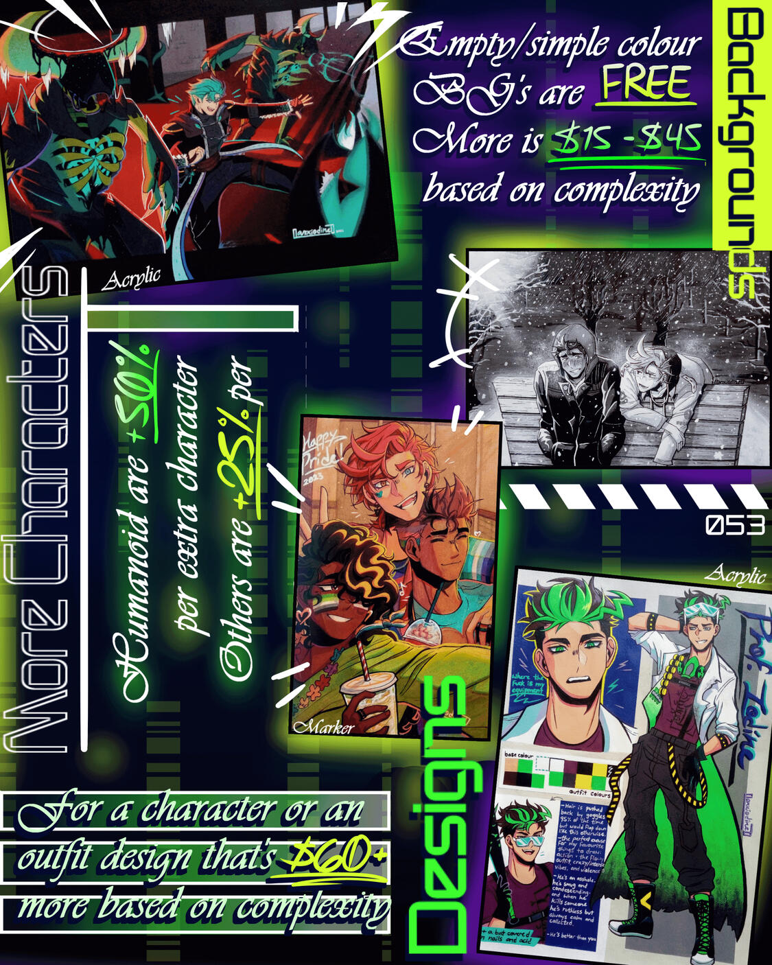 All prices in USD and through Ko-fi, in case you missed it. SO;